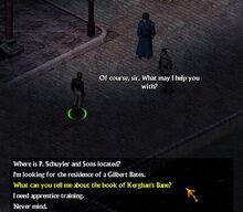 - The dialogue that causes this can be avoided by clicking on a hotkey that is equipped by a spell or usable item without replying to his first line of dialogue.